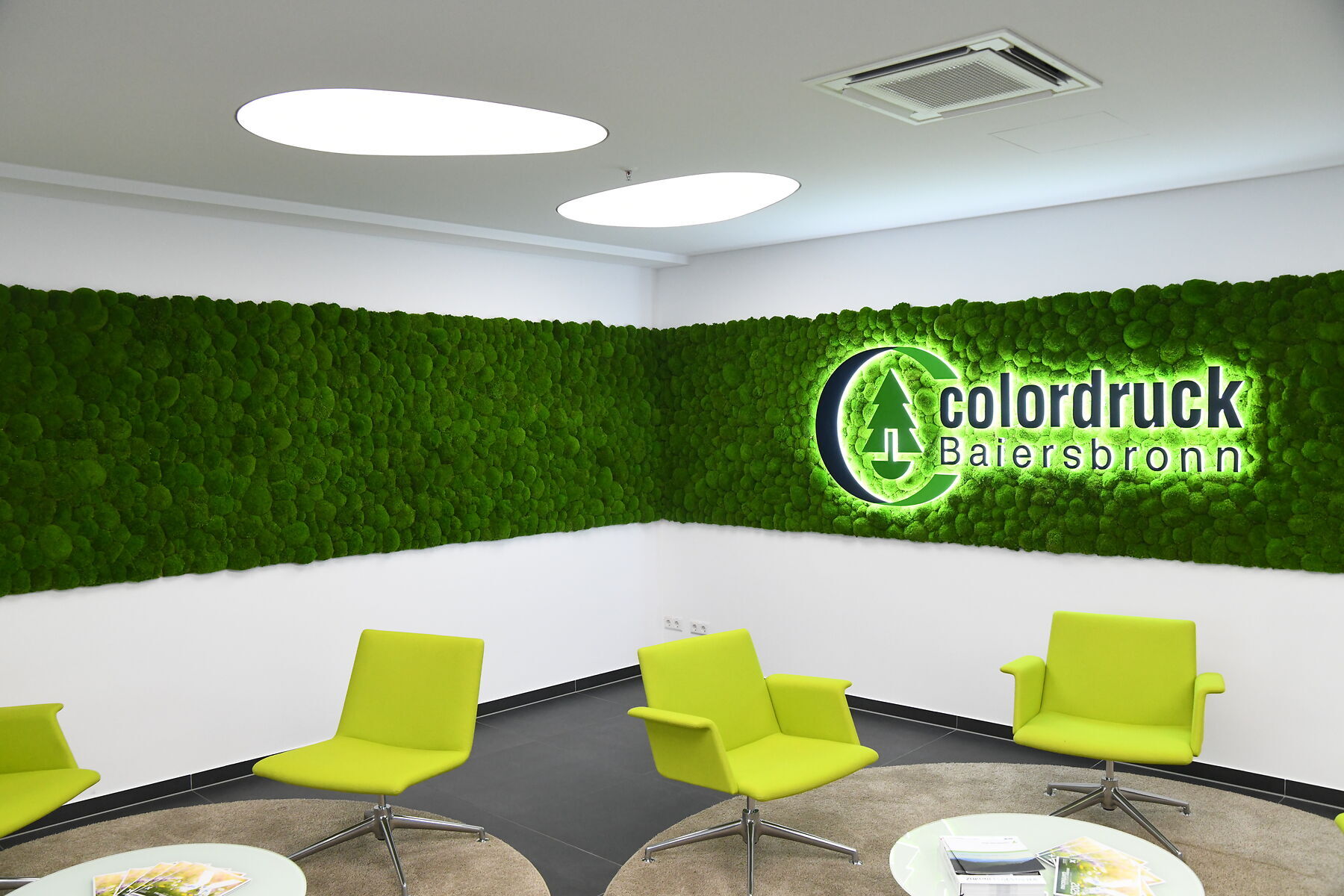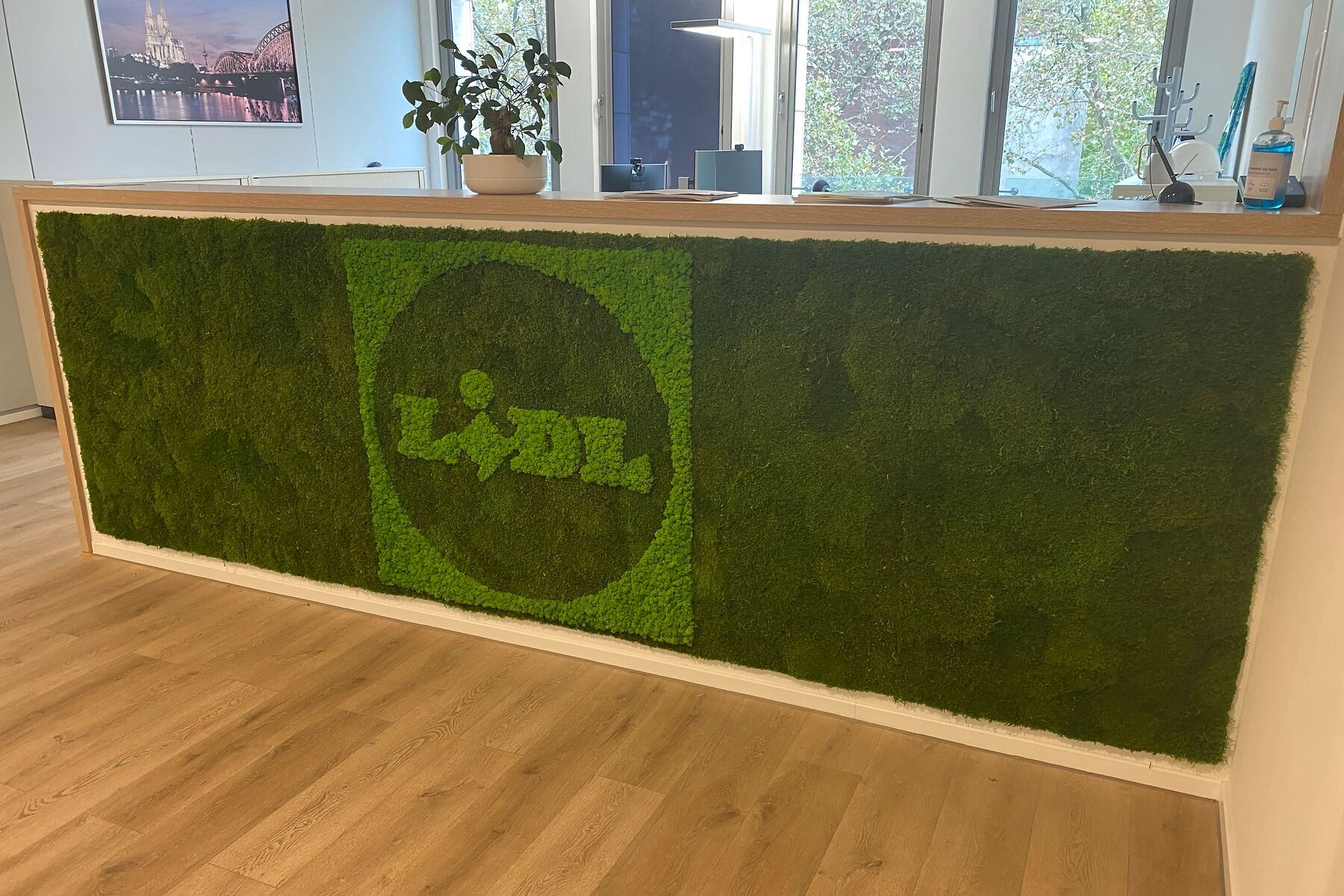 Unsere Mooslogos finden sich in Empfangsbereichen, Konferenzräumen und Showrooms namhafter Unternehmen. Egal ob als Logointegration auf einem Moosbild aus Holz, Acryl oder Leuchtlogo oder als Mooslogo, bei dem der Schriftzug direkt aus Moos gefertigt wird - Sie haben die Wahl.