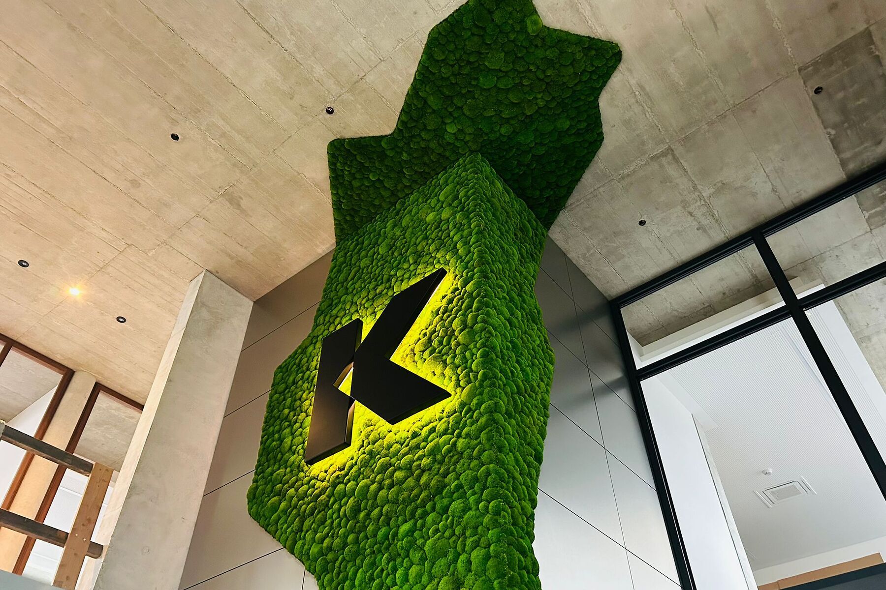 Ein Logo aus konserviertem Moos vereint Design und Funktionalität: