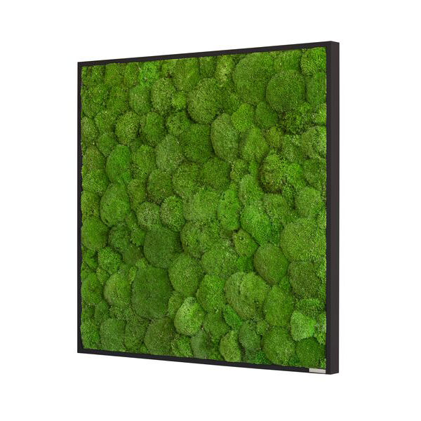 - Das Moosbild befindet sich in einem schwarzen FSC-zertifizierten Vollholzrahmen. Weitere Rahmenarten entnehmen Sie bitte dem nächsten Punkt.