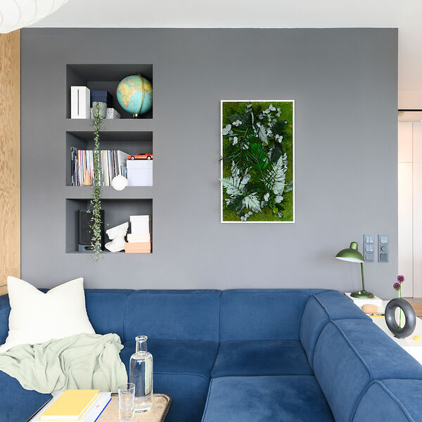 Die verwendeten Pflanzen und Moose sind zu 100% natürlich und werden in einem speziellen Verfahren dauerhaft konserviert. Sie benötigen nun weder Licht noch Wasser. Dennoch sehen die Pflanzen lebendig grün aus und fühlen sich geschmeidig und frisch an.