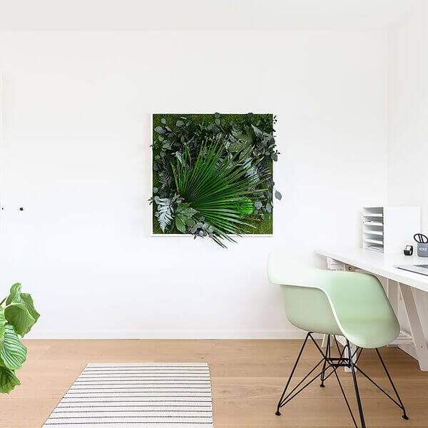 Das 80x80cm Pflanzenbild im Dschungeldesign ist ein absolutes Highlight im Design-Trend der 2020er: Inspiration und Statement im Büro, Wohlgefühl und Entspannung mit Wow-Effekt für Ihr Zuhause. Tropische Akzentpflanzen werden üppig und dreidimensional in einem klaren Flow gesetzt und mit heimischen Moosen komponiert. Unser Pflanzenbild im Dschungeldesign wurde von ausgezeichneten Spitzendesignern gestaltet. Jedes einzelne ist ein handgemachtes Unikat, qualitativ hochwertig, nachhaltig und langlebig.