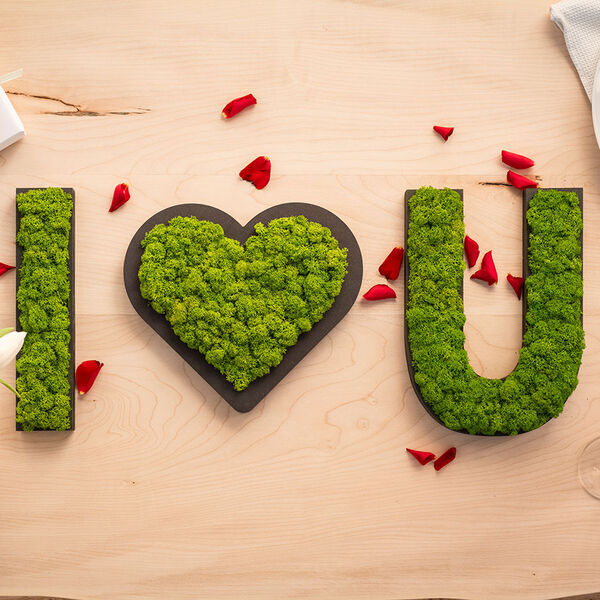 Nicht nur für den Muttertag oder Valentinstag ein perfektes Geschenk, auch unter dem Jahr ist das Piktogramm aus Islandmoos ein ganz besonderes Wohnaccessoire!