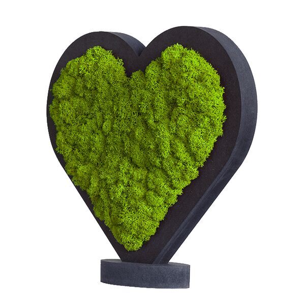 Das Piktogramm “Herzchen” besteht aus einem schwarz durchgefärbten Holzfaserrahmen (MDF). Das verwendete skandinavische Islandmoos in rot oder grün ist aufgrund seiner natürlichen Beschaffenheit ausschließlich für die Verwendung in Innenräumen gedacht.