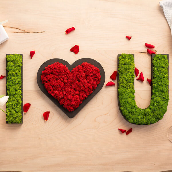 Das Piktogramm “Herzchen” besteht aus einem schwarz durchgefärbten Holzfaserrahmen (MDF). Das verwendete skandinavische Islandmoos in rot oder grün ist aufgrund seiner natürlichen Beschaffenheit ausschließlich für die Verwendung in Innenräumen gedacht.