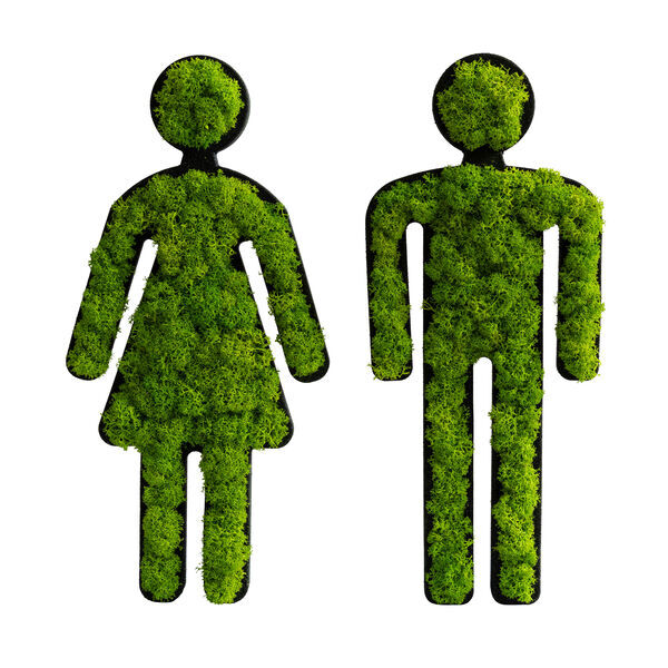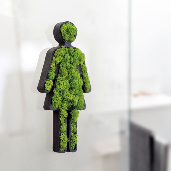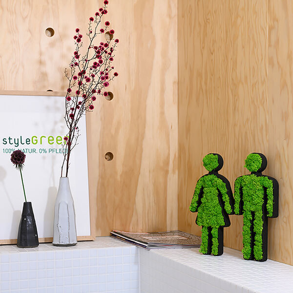 Das grüne Toilettenschilder-Set "Mann" und "Frau" aus einem schwarzen Korkrahmen und echtem, konservierten Islandmoos ist ein absoluter Hingucker - und zeigt zweifelsohne für wen die Toiletten oder Umkleideräume vorgesehen sind. Mit 25 cm hat es die optimale Größe für Türen oder als Wegweiser an Wänden.