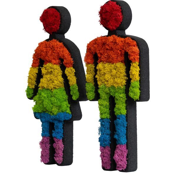 Unser styleGREEN Moospärchen Set gibt es jetzt auch in bunt! Das Toilettenschilder-Set "Mann" und "Frau" besteht aus einem schwarzen Korkrahmen und sechs verschieden farbigen Islandmoosen. Mit den regenbogenfarbigem Moospärchen zum Trendsetter mit Statement!