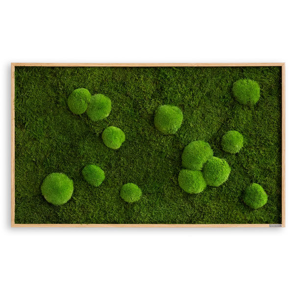 Moosbild: Wald- und Kugelmoos 100x60 cm Vollholz (Eichenfurnier)