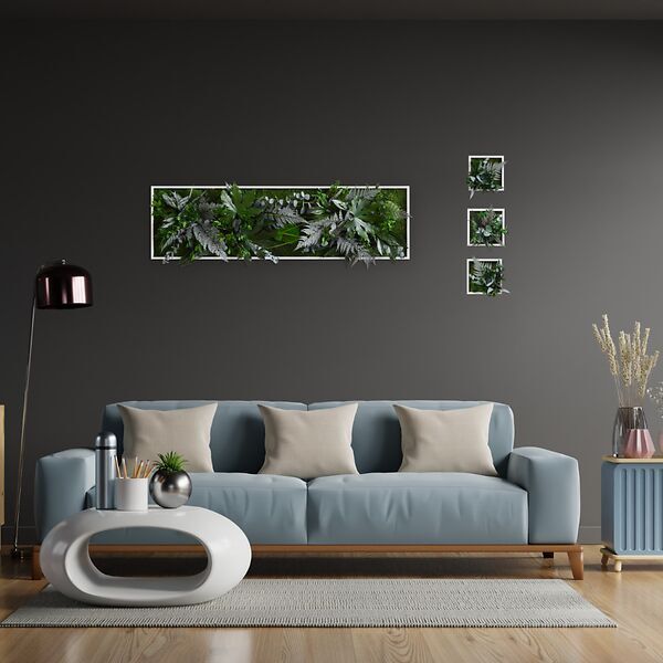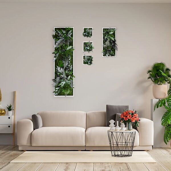 Die verwendeten Pflanzen und Moose sind zu 100% natürlich und werden in einem speziellen Verfahren dauerhaft konserviert. Sie benötigen nun weder Licht noch Wasser. Dennoch sehen die Pflanzen lebendig grün aus und fühlen sich geschmeidig und frisch an.