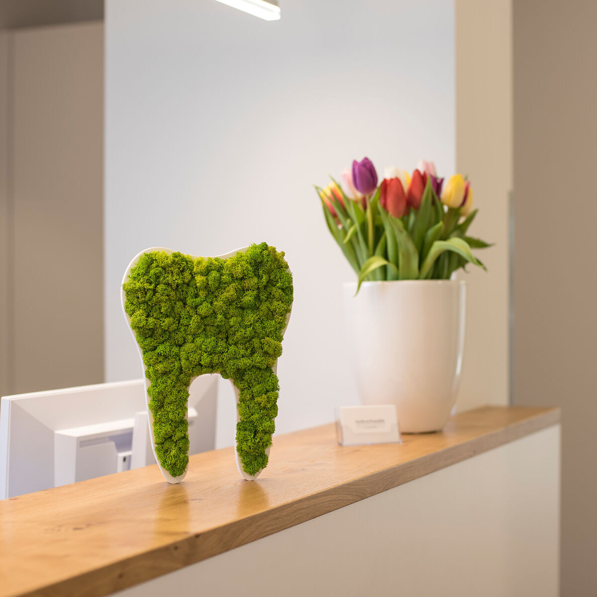 Der kleinste unserer Zähne kommt selbst mit einer Höhe von nur 30 cm richtig groß raus. Durch seine Größe kann er nicht nur an der Wand angebracht werden, sondern kann auch stehend auf ihrem Epfangstresen für ein Wohlfühlatmosphäre Ihrer Patienten sorgen.